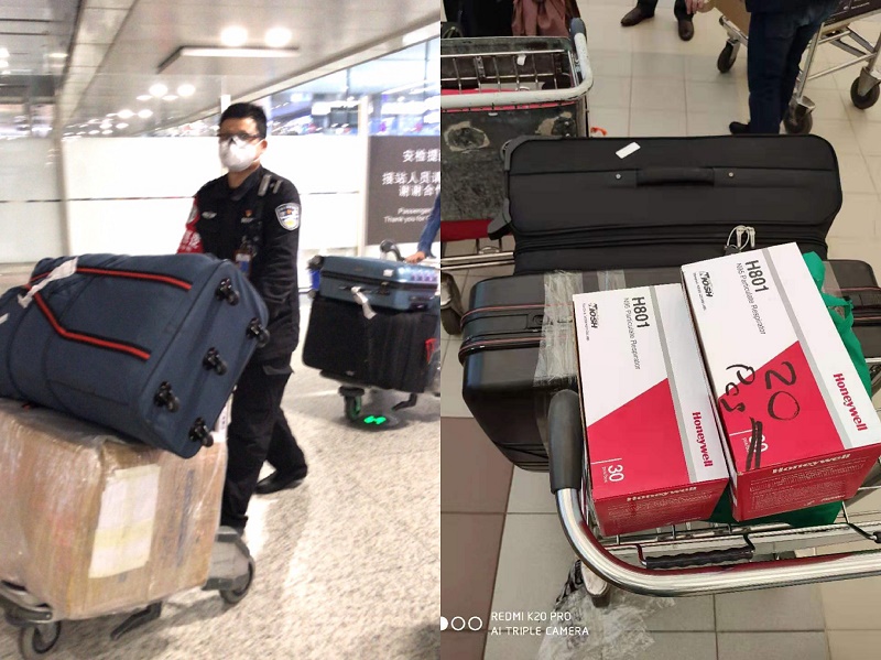 此批醫(yī)療防疫物資數(shù)量較大,其中3萬只醫(yī)療防護(hù)口罩是由華越集團(tuán)海外業(yè)務(wù)合伙人范蘇靜先生從肯尼亞攜帶入境的。在廣州轉(zhuǎn)機(jī)的過程中,由于范總攜帶的7大箱物資超出了個(gè)人托運(yùn)的限額,無法辦理托運(yùn)手續(xù)。此時(shí),一位來自揚(yáng)州的女士帶著自己的孩子前來詢問。當(dāng)?shù)弥@七大箱物資是捐給一線防疫人員的口罩后,她立刻與機(jī)場(chǎng)人員溝通,與范總共享了托運(yùn)行李額,并一路護(hù)送這批物資抵達(dá)南京。