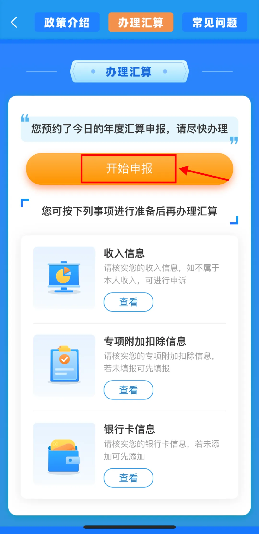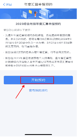 選擇預約日期→顯示預約成功后,按預約時間登錄個人所得稅APP→選擇綜合所得年度匯算,點擊“開始申報”