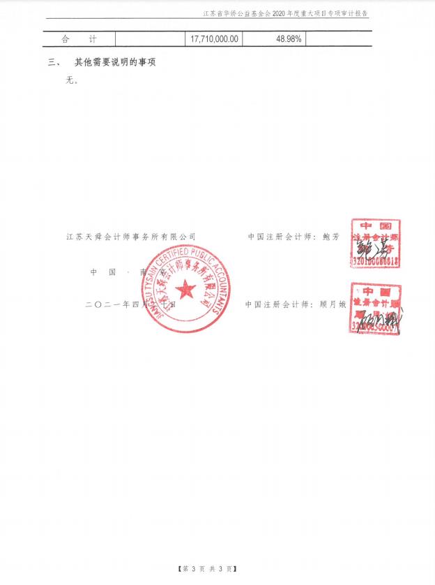 江蘇省華僑公益基金會(huì)2020年重大項(xiàng)目專(zhuān)項(xiàng)審計(jì)報(bào)告