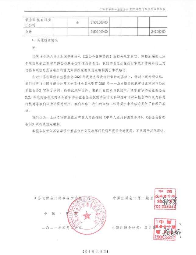 江蘇省華僑公益基金會(huì)2020年專項(xiàng)信息審核報(bào)告