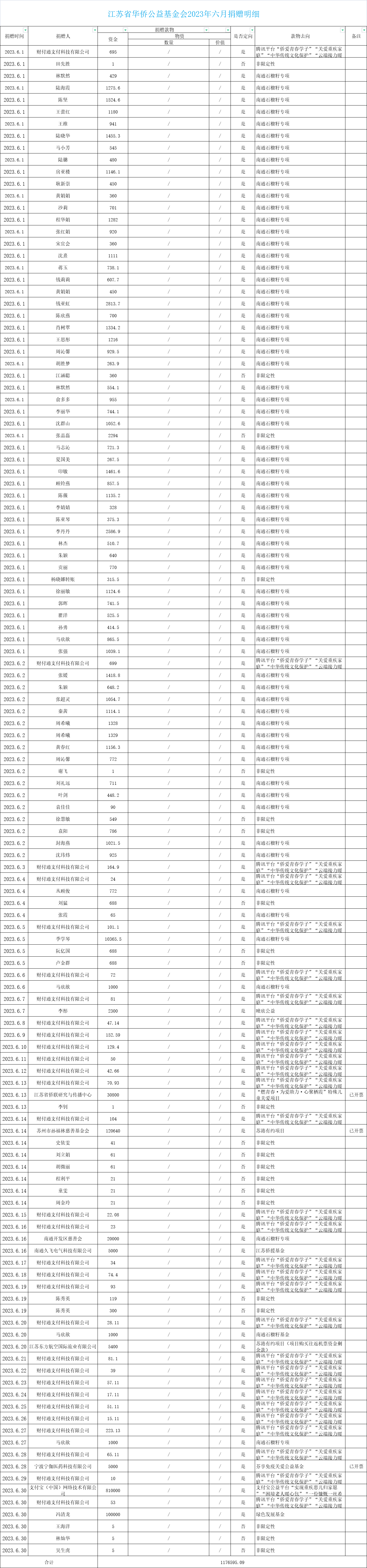 江蘇省華僑公益基金會(huì)2023年六月捐贈(zèng)明細(xì)