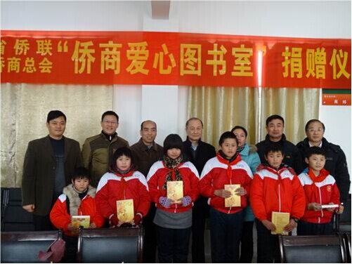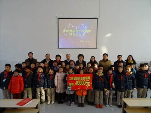 捐贈“僑商愛心圖書室”項目是省僑商總會開展的“僑商愛心行動”的一項主題活動,旨在通過向蘇北小學(xué)捐贈教育部門推薦閱讀的書目與知名出版社出版的小學(xué)生喜愛的課外文藝科普讀物,豐富課余生活,提高學(xué)生綜合素質(zhì)。自2010年來,共向蘇北5所小學(xué)捐贈圖書與文體用品價值25萬余元,近1.5萬冊圖書。其中,連續(xù)兩年赴省僑聯(lián)對口扶貧單位宿遷泗陽縣里仁鄉(xiāng)捐贈“僑商愛心圖書室。