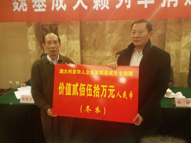 鎮(zhèn)翔代表主辦單位講話,對魏基成先生扶貧助學(xué)、熱心公益的善舉表示崇高敬意,向?qū)栀浌ぷ鹘o予大力支持的各有關(guān)單位表示衷心感謝,向受贈老人和聽障孩子們致以誠摯問候。他要求各有關(guān)單位嚴格按照捐贈人的意愿,扎實做好受贈物品的發(fā)放工作,做到讓捐贈人放心、使受贈人滿意。他表示,省僑聯(lián)、省華僑公益基金會將認真貫徹落實中央扶貧開發(fā)工作會議和習(xí)近平總書記重要講話精神,廣泛匯聚僑界愛心人士的力量,大力發(fā)展僑界慈善公益事業(yè),持續(xù)做好扶貧濟困工作,為打贏脫貧攻堅戰(zhàn)作出應(yīng)有的貢獻。