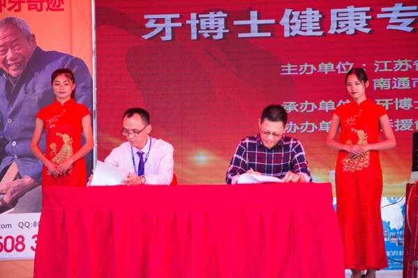 適逢全國(guó)愛牙日9月20日,由江蘇省華僑公益基金會(huì)、南通市僑聯(lián)主辦,南通市牙博士口腔門診部有限公司承辦;江蘇省華僑公益基金會(huì)“牙博士健康基金”揭牌儀式——暨“人人公益幸福南通”牙博士口腔健康知識(shí)講座及義診活動(dòng)在南通市五洲國(guó)際廣場(chǎng)舉行。江蘇省華僑公益基金會(huì)秘書長(zhǎng)馬云鵬、南通市僑聯(lián)主席吳亞軍、2015年感動(dòng)中國(guó)十大人物之一磨刀老人吳錦泉及500多名群眾參加了活動(dòng)。