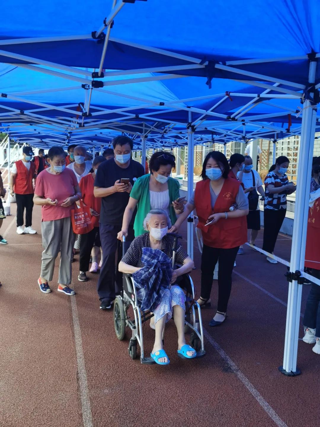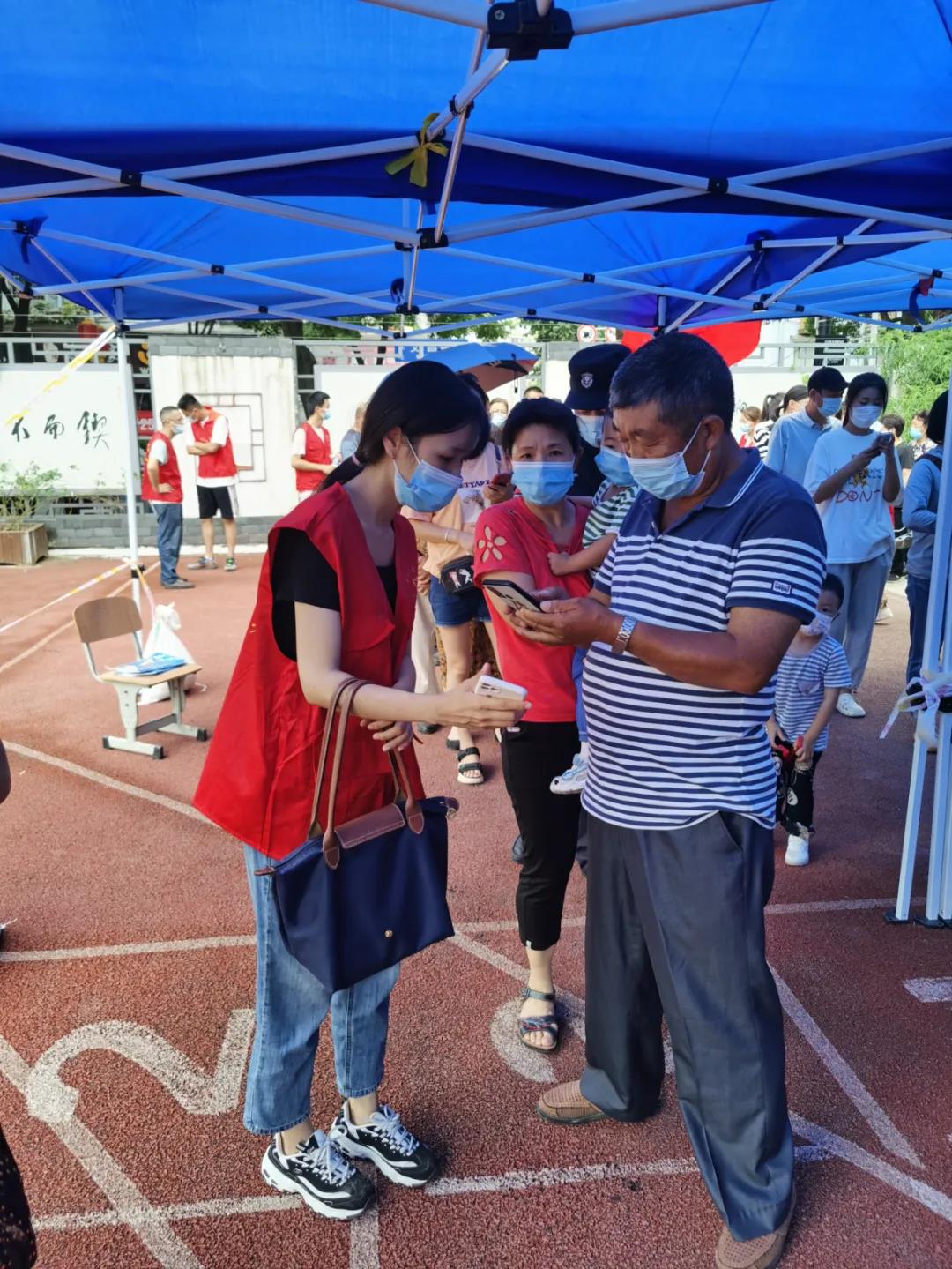 根據(jù)街道和社區(qū)安排部署,志愿者們于7月25日上午7時20分趕赴江浦實(shí)小核酸檢測采樣點(diǎn),投入到服務(wù)工作中。浦口區(qū)教育系統(tǒng)僑聯(lián)主席呂仕蕓以身作則,和志愿者們一同協(xié)助完成隊(duì)伍秩序維持、檢測掃碼、錄入登記等工作,志愿服務(wù)安全有序地開展著。