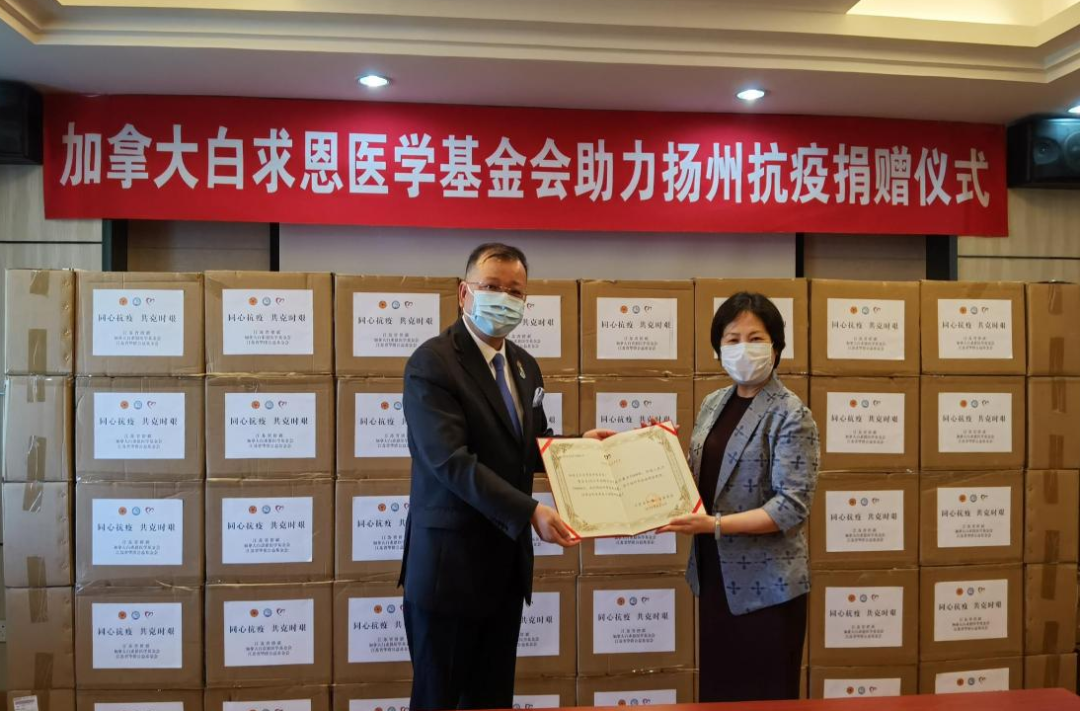 顧宇代表加拿大白求恩醫(yī)學(xué)基金會(huì)感謝每位堅(jiān)守抗疫一線的工作人員,相信此次南京和揚(yáng)州不久即會(huì)取得疫情防控的勝利。他說,此次新冠疫情蔓延全球,世界各國(guó)誰都無法獨(dú)善其身,相互間只有在精神上相互支撐、物資上相互支持、經(jīng)驗(yàn)上相互交流,才能最終戰(zhàn)勝疫情。中國(guó)所取得的各項(xiàng)抗疫成果和經(jīng)驗(yàn)有目共睹,值得學(xué)習(xí)借鑒。我們呼吁國(guó)際社會(huì)團(tuán)結(jié)抗擊疫情,反對(duì)搞疫情污名化、病毒標(biāo)簽化、溯源政治化?;厥?020年,在海外疫情暴發(fā)初期,身居海外的僑胞、留學(xué)生就收到了祖國(guó)各界捐贈(zèng)的抗疫物資和抗疫經(jīng)驗(yàn)分享,讓我們切身感受到祖國(guó)的關(guān)心和愛護(hù)。加拿大白求恩醫(yī)學(xué)基金會(huì)將秉承一致,當(dāng)好中加友好交流的橋梁,為祖籍國(guó)和住在國(guó)民心相通做出應(yīng)有的貢獻(xiàn)。希望通過本次捐贈(zèng),能夠幫助到戰(zhàn)斗在抗疫一線的工作人員更好地預(yù)防病毒的侵害,助力揚(yáng)州取得抗疫勝利。