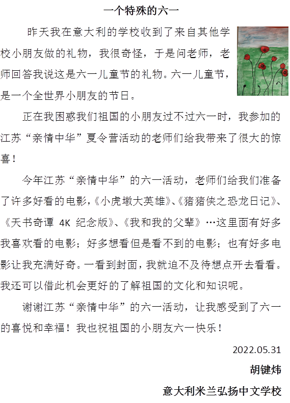 意大利米蘭弘揚(yáng)中文學(xué)校學(xué)生胡鍵煒