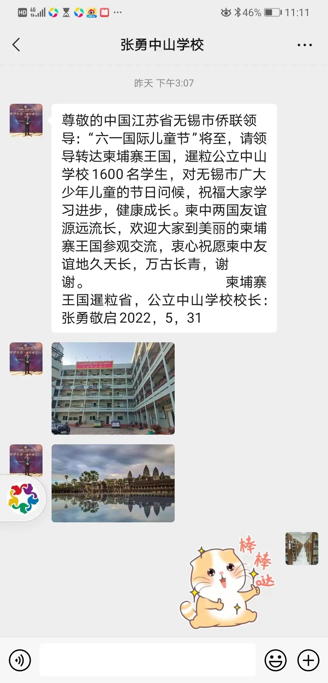 全美華裔青少年協(xié)會會長麥曼抒、柬埔寨端華學(xué)校校長楊金義、法國法中國際文化交流中心中文學(xué)校校長陳明紅、科威特華人華僑聯(lián)合會會長張永達(dá)、意大利弘揚(yáng)中文學(xué)校校長蔡愛秋、意大利帕多瓦國際學(xué)校校長李雪梅、日本大成中文學(xué)院院長張蓉、加拿大慈福公益基金會劉莉莉、溫哥華北京中文學(xué)校校長王滿霞、菲律賓佩蘭舞蹈藝術(shù)中心負(fù)責(zé)人何佩蘭、西哈努克港工商學(xué)院(西港工商學(xué)院)執(zhí)行校長李傳彬等發(fā)來微信祝福,祝愿無錫市兒童們節(jié)日快樂!