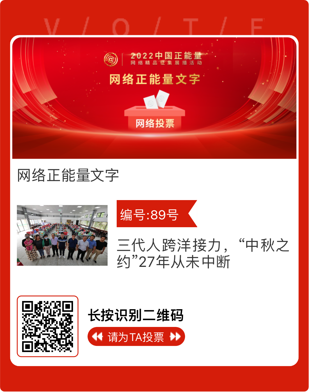 團(tuán)結(jié)奮進(jìn)新征程,同心奮斗創(chuàng)偉業(yè)。近日,由中央網(wǎng)信辦主辦的2022中國(guó)正能量網(wǎng)絡(luò)精品征集展播活動(dòng)正在火熱進(jìn)行中。經(jīng)過申報(bào)、初選,近1100件網(wǎng)絡(luò)正能量作品脫穎而出,進(jìn)入網(wǎng)絡(luò)展播投票環(huán)節(jié)。其中,江蘇僑界何俊成一家三代27年“慈善接力”的家風(fēng)故事引發(fā)關(guān)注。