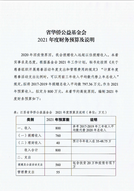 江蘇省華僑公益基金會(huì)2021年度財(cái)務(wù)預(yù)算及說明