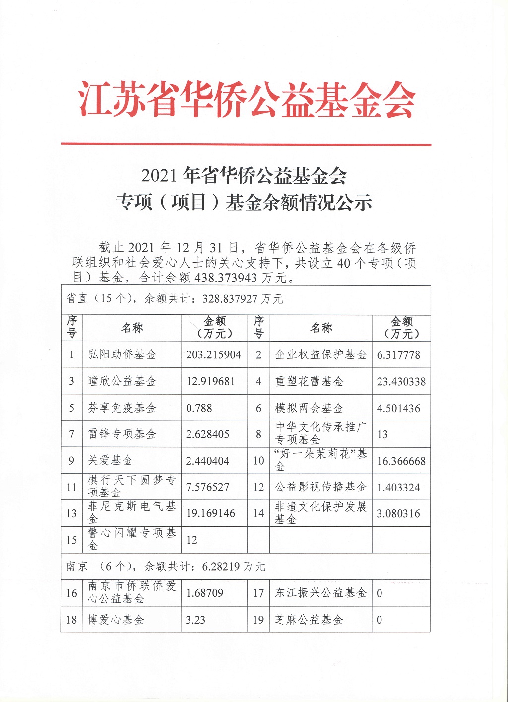 2021年省華僑公益基金會(huì)專項(xiàng)(項(xiàng)目)基金余額情況公示