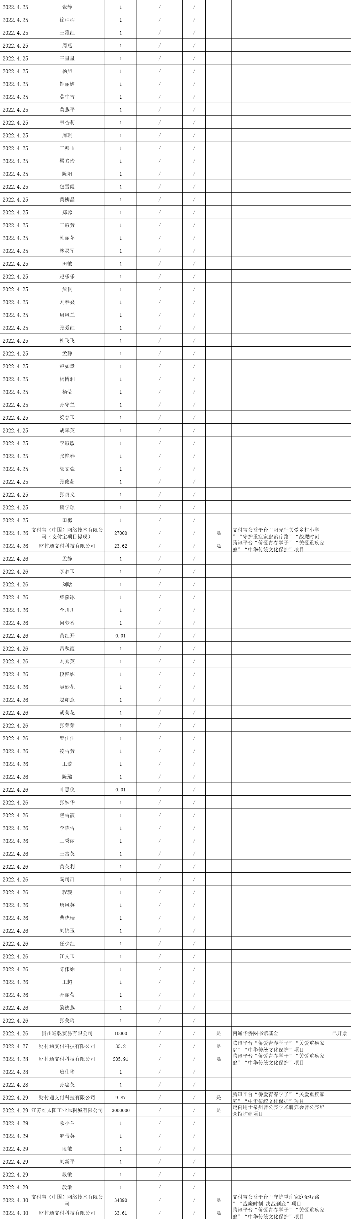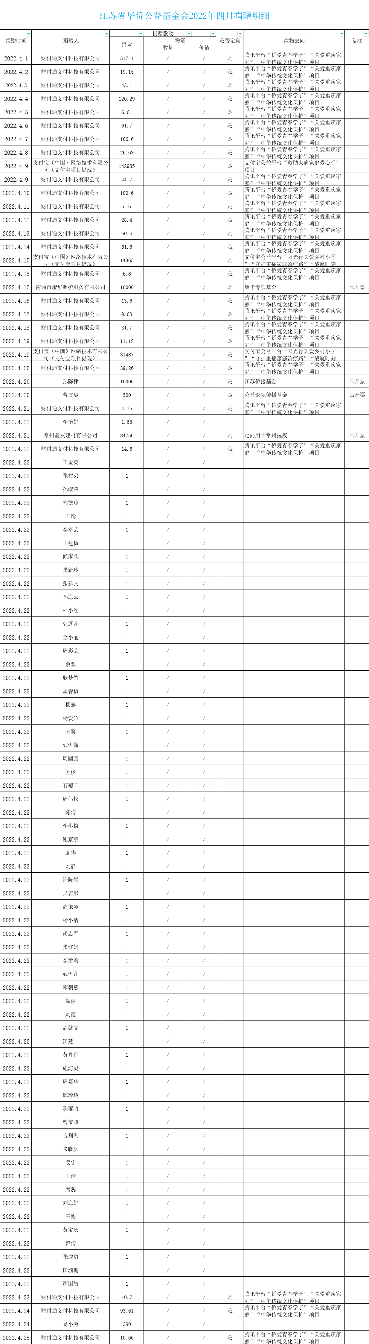 江蘇省華僑公益基金會2022年四月捐贈明細(xì)