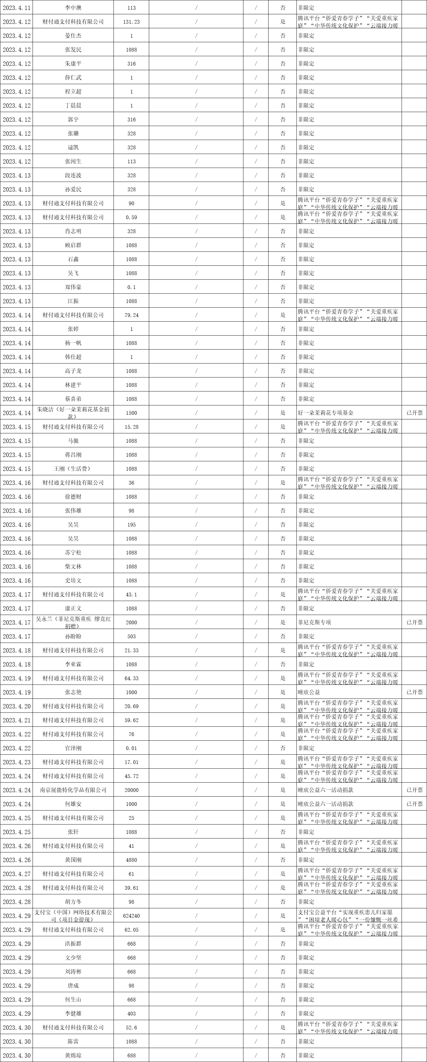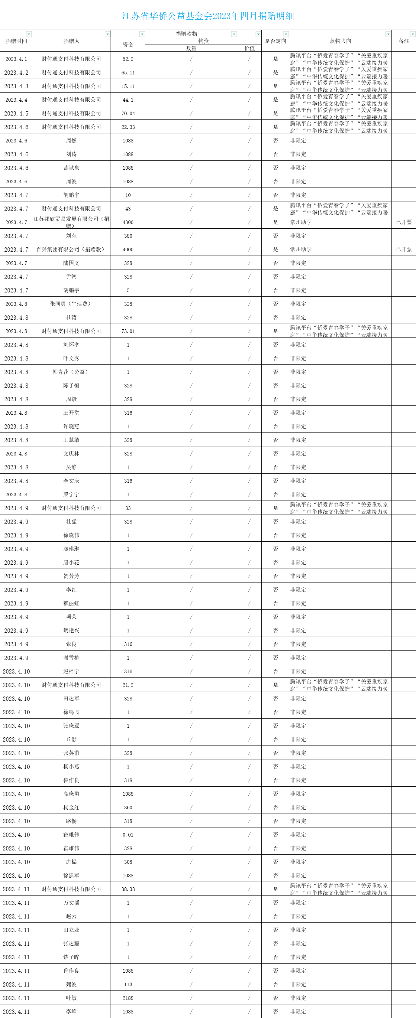 江蘇省華僑公益基金會2023年四月捐贈明細(xì)