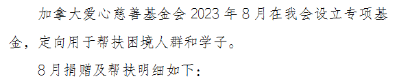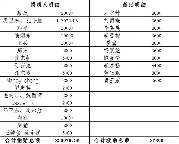 江蘇省華僑公益基金會(huì)加拿大愛心慈善基金會(huì)專項(xiàng)收支明細(xì)