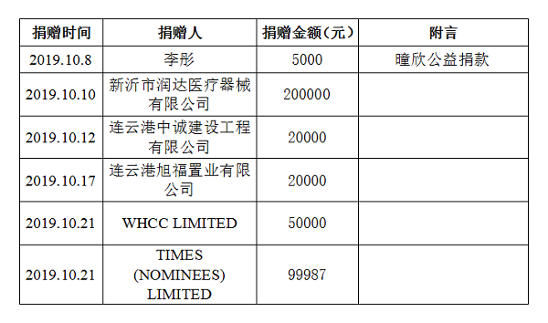 江蘇省華僑公益基金會2019年十月捐款明細(xì)
